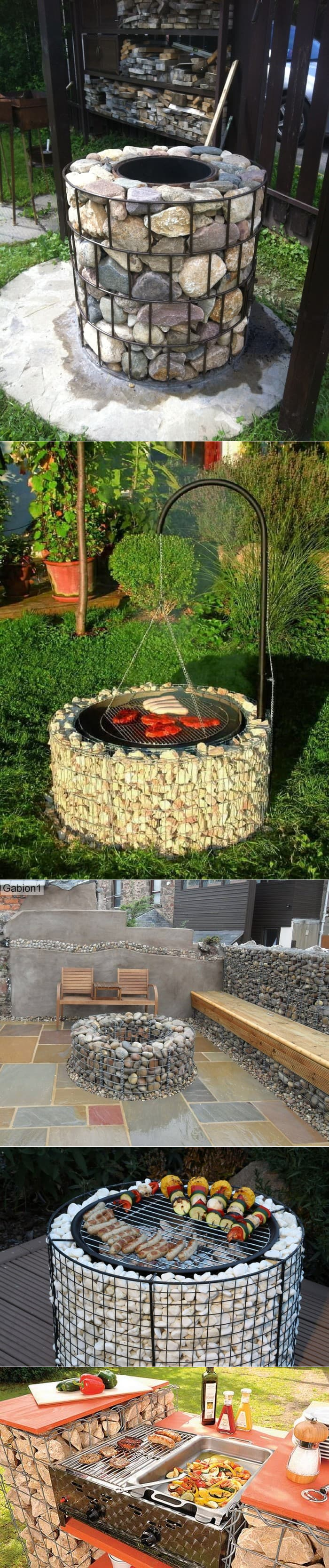 Оригинальное барбекю из габионов во дворе | Живу за городом