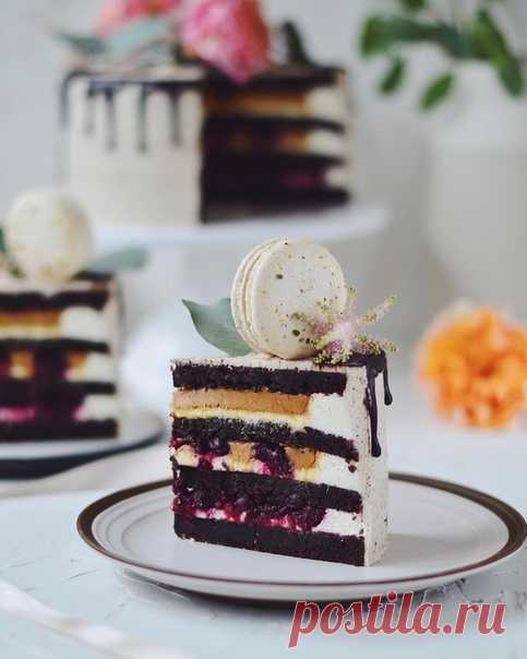 "Шоколадный торт с карамелью и вишней" -----------— Супер влажные коржи на пиве Гиннес, ароматные и сытные, взбитая Соленая карамель, которая тает во рту и прослойка из ароматной пьяной вишни просто идеальная компания -----------— D=20 см Для бисквита: Пиво Гиннес-500 г Масло сливочное- 280 г Мука-340 г Яйцо-5 шт Какао-порошок-125 г Сахар-440 г Разрыхлитель-10 г ⠀ Приготовление. В сотейнике нагреваем Гиннес до кипения, снимаем с огня и добавляем масло нарезанное на кусочки...