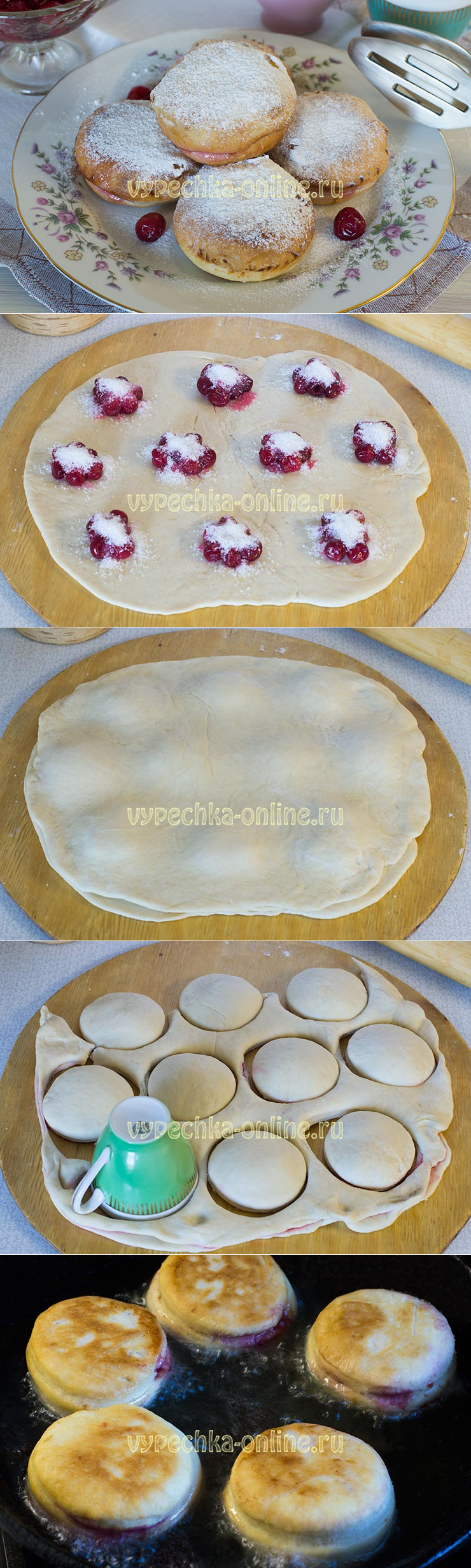 ✔️Пончики на молоке и дрожжах рецепт на сковороде с начинкой из вишни
