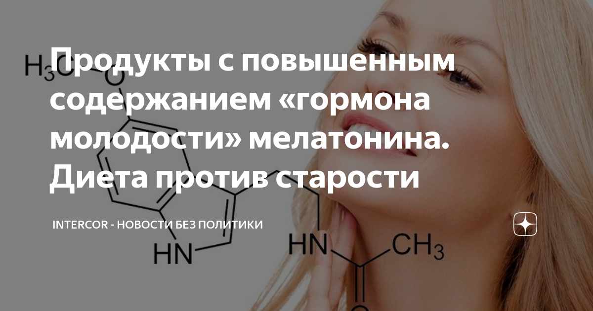 Продукты с повышенным содержанием «гормона молодости» мелатонина. Диета против старости Мелатонин можно назвать уникальным веществом. Это гормон, вырабатывающийся в головном мозге человека для того, чтобы использовать в процессе нейрофизиологический реакций.