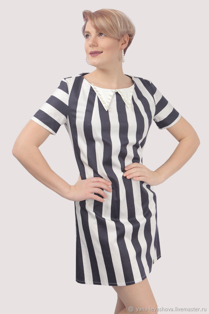 Платье в полоску хлопковое с жемчужным воротничком короткое – купить на Ярмарке Мастеров – LRXE8RU | Платья, Москва
