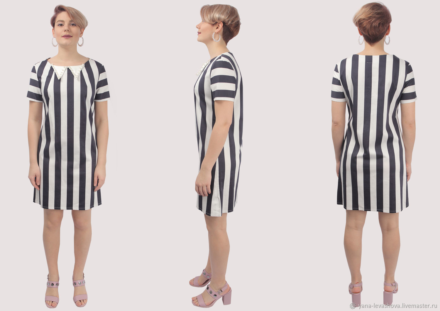Платье в полоску хлопковое с жемчужным воротничком короткое – купить на Ярмарке Мастеров – LRXE8RU | Платья, Москва