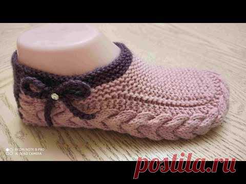 Тапочки - следки на двух спицах без шва № 37./ Tejiendo Pantuflas