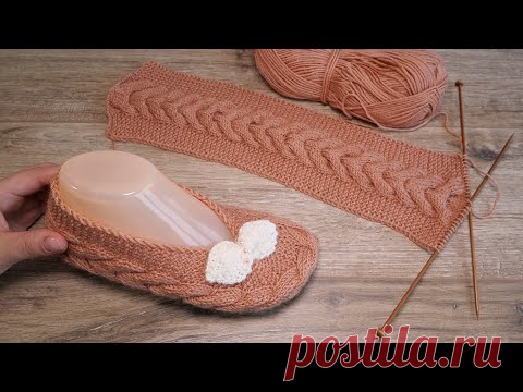 Следки с поперечной косой спицами 👠 Cables Slippers knitting pattern