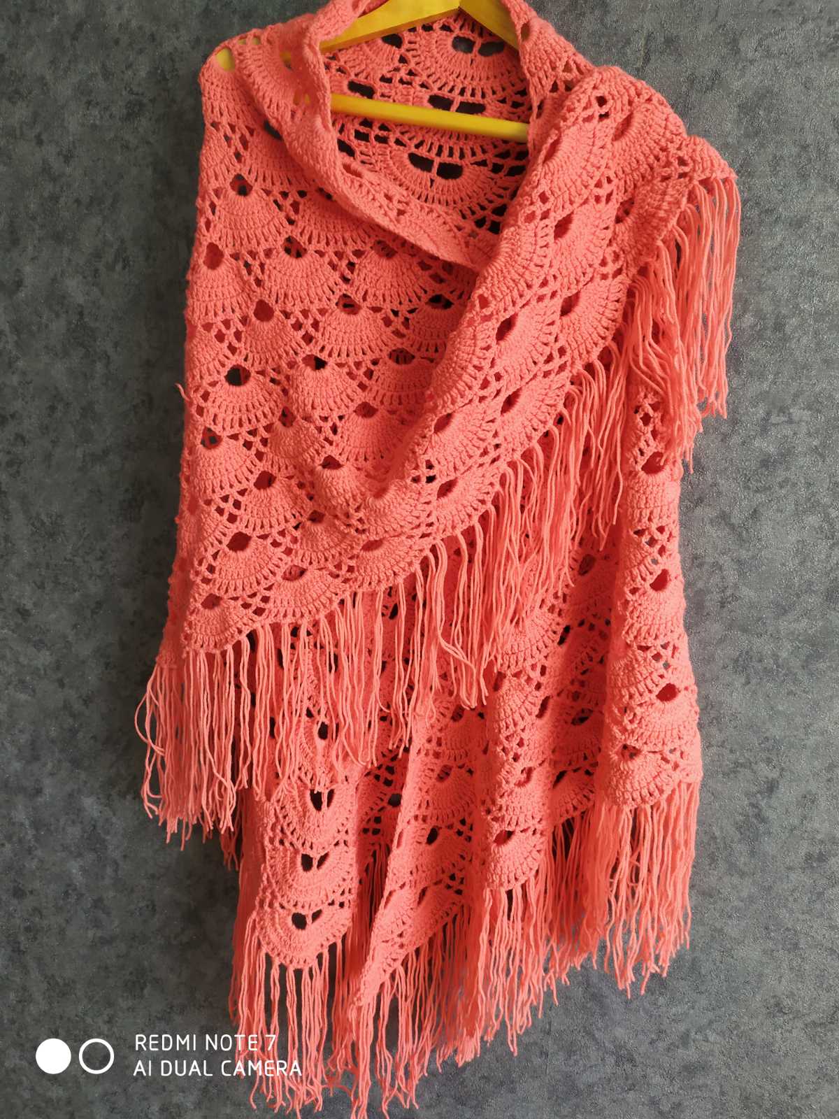 Мои шали крючком. Здравствуйте рукодельницы! Люблю вязать крючком! Вяжу шали и их дарю. Две связаны из пряжи троицкой Кроха 135 м. в 50 гр. Цвет светлая азалия номер 1926.Пошло 20 клубочков крючок 2.5.