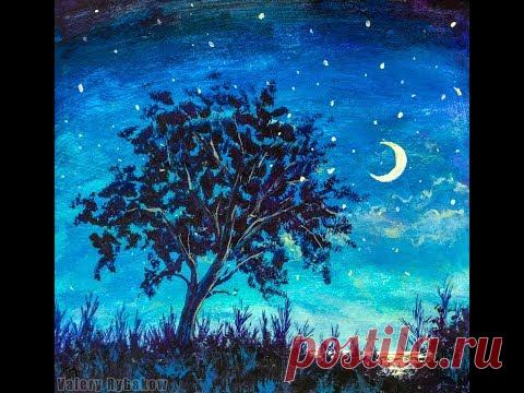 Рисуем ночной космический пейзаж | ПРОСТЫЕ УРОКИ РИСОВАНИЯ | Валерий Рыбаков