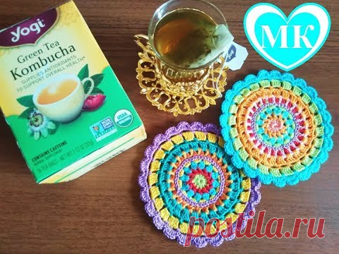 Мастер-класс по вязанию крючком салфетки, подставки под горячее для чашки, кружки из остатков пряжи