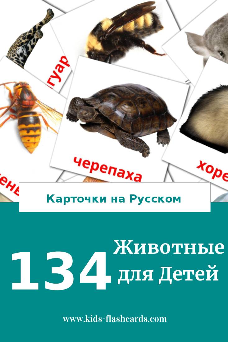 134 бесплатных карточек Животные для детей на Русском (PDF файлы)