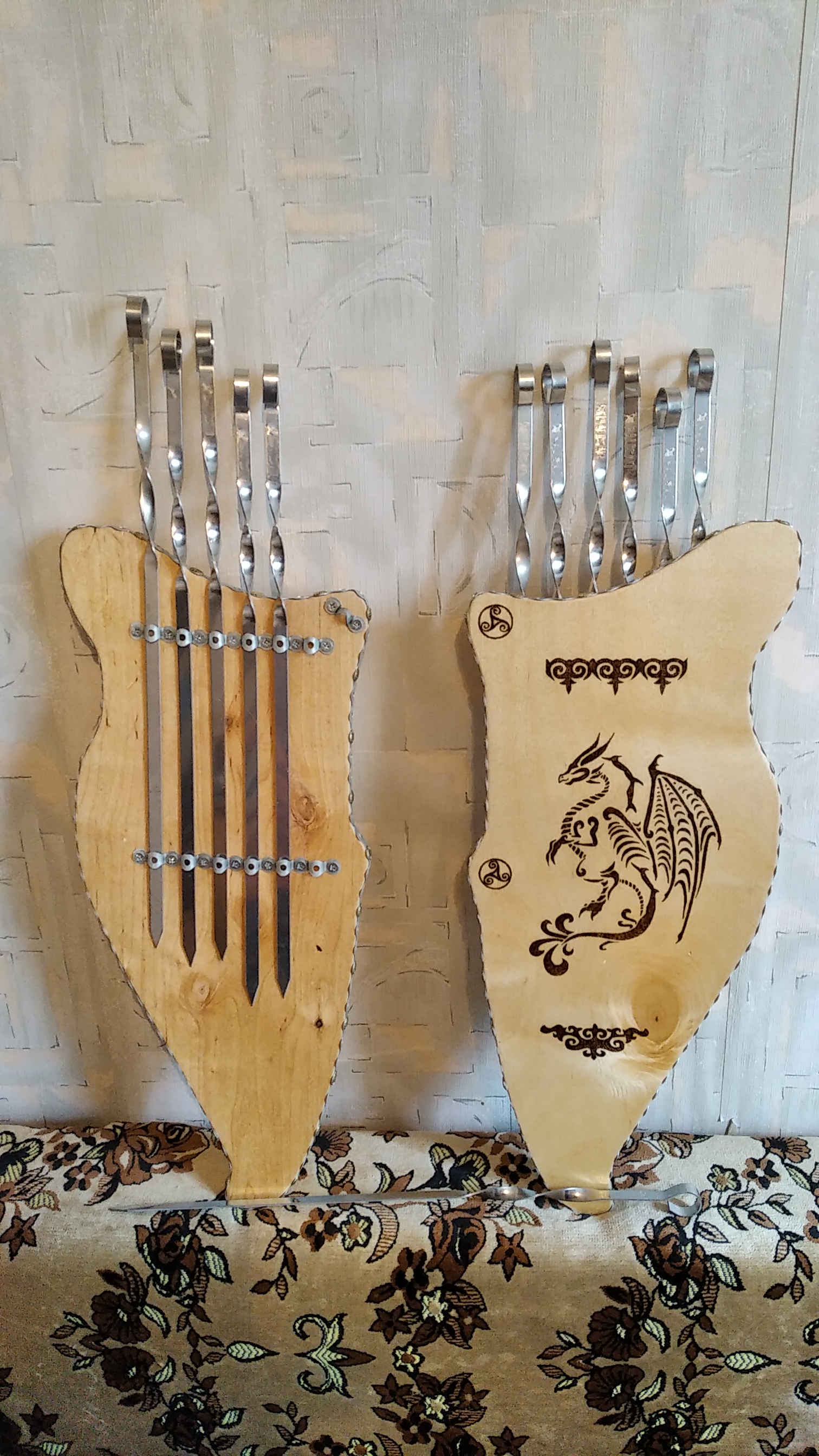 ✅- 1 разделочная доска-колчан, для хранения шампуров с подвесом и рисунком нанесенным методом выжигания по дереву,