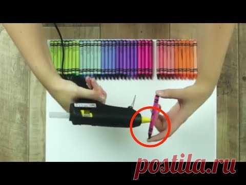 Клеим на холст восковые мелки и беремся за фен. Вау!
