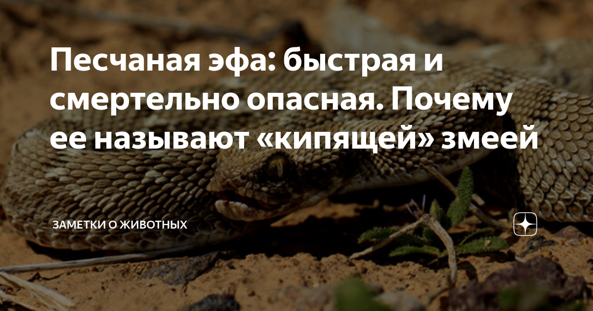 Песчаная эфа: быстрая и смертельно опасная. Почему ее называют «кипящей» змеей При встрече с грозной песчаной эфой многих людей одолевает панический страх. Оно и понятно — репутация у этой ядовитой рептилии не самая лучшая.