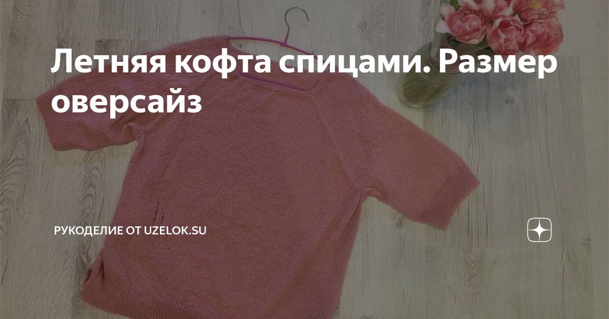 Летняя кофта спицами. Размер оверсайз Свяжем модную и простую летнюю кофту круговыми спицами на размер от 42 до 48 – оверсайз. Для тех, кто любит свободные вещи. Рукав ¾. И будет еще изюминка – несколько рядов спущенных петель, так называемая, рвань (искусственно созданная). Самое время приступать к вязанию, погода шепчет Вязать будет сверху: разделим полотно на 4 части, сделаем прибавки реглана. Затем довяжем тело кофты и