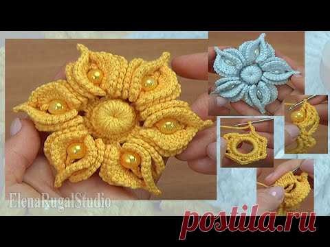 Великолепный цветок крючком с бусинами Урок 177 Мастер класс