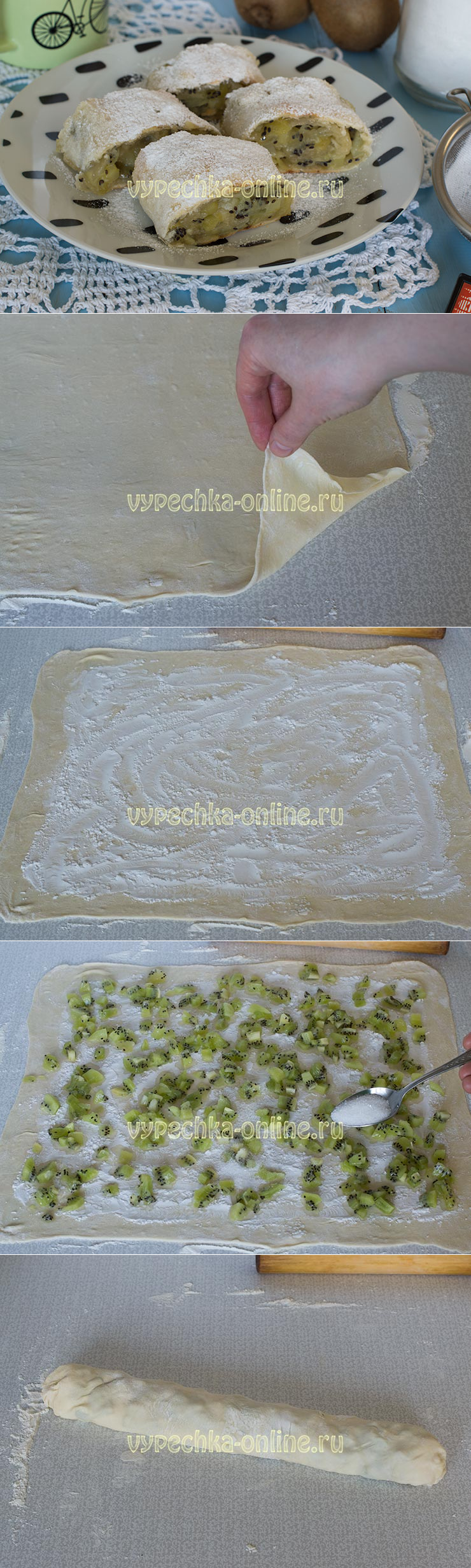 ✔️Штрудель из слоёного теста с киви пошаговый рецепт с фото (постный, бездрожжевой)