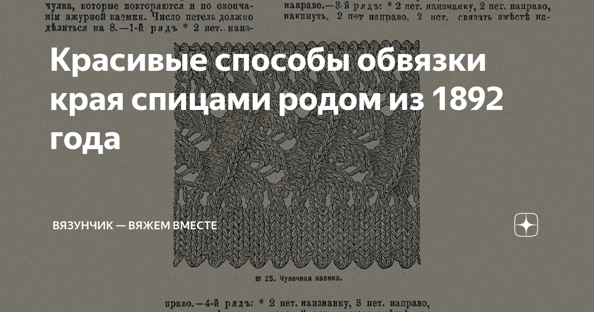 Красивые способы обвязки края спицами родом из 1892 года Продолжаю знакомить вас с вязанием 1892 года