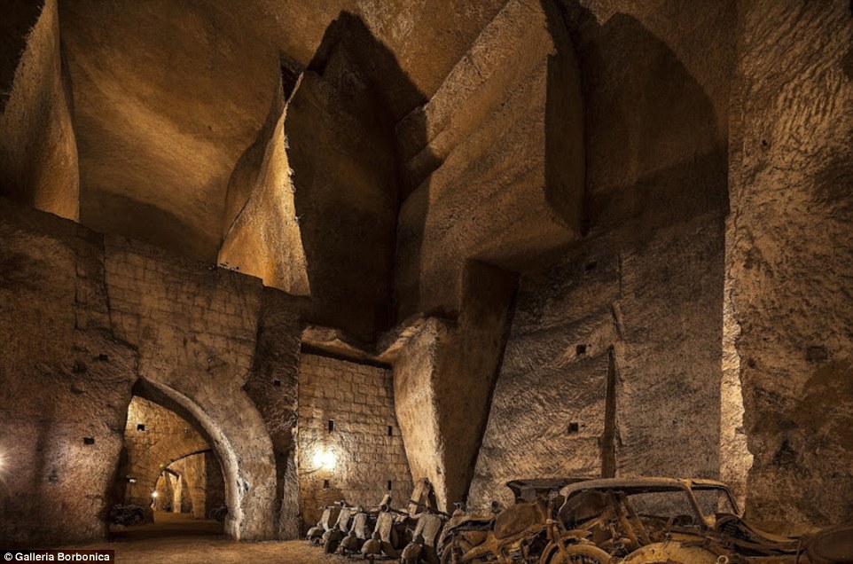 Подземный тоннель 1853 года, для эвакуации короля Фердинанда II Бурбона Внутри секретного тоннеля под Неаполем, который строился на случай побега короля...Сейчас этот тоннель служит складом для заброшенных винтажных автомобилей и мотоциклов.