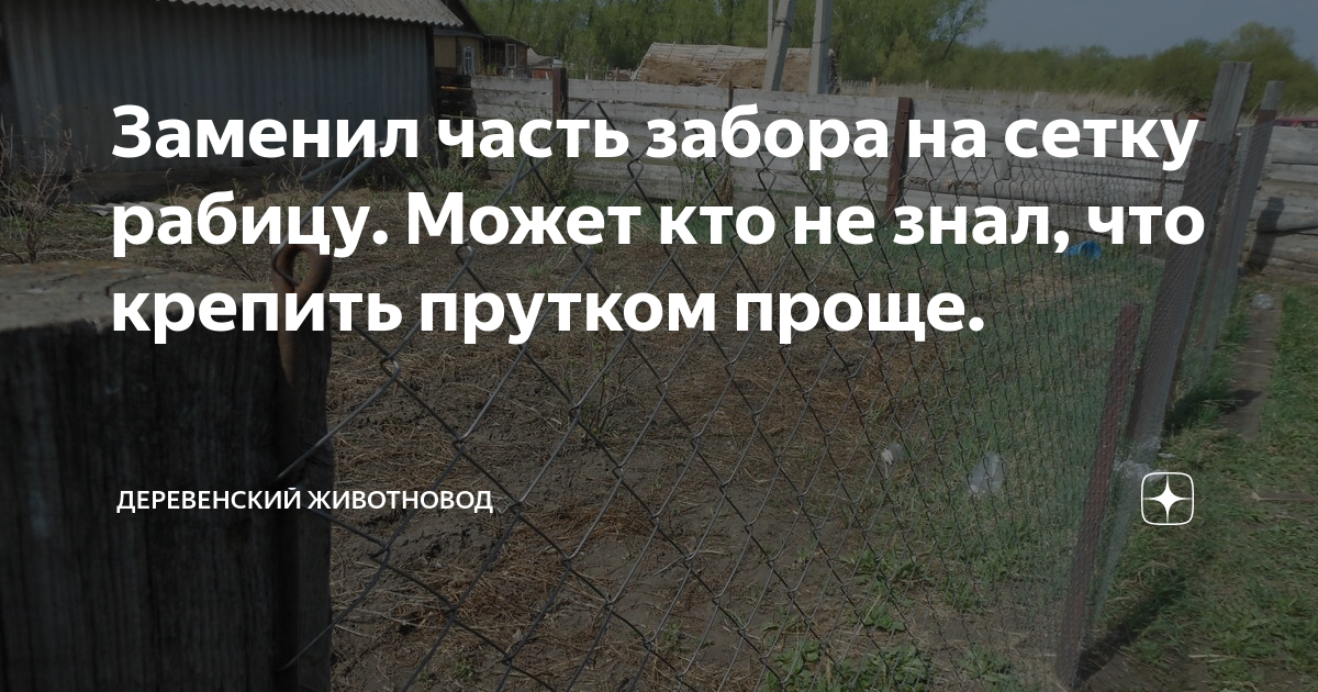 Заменил часть забора на сетку рабицу. Может кто не знал, что крепить прутком проще. Уже совсем сгнил забор, потому пришлось купить рулон сетки и поставить вместо него. Нарисовалась лишь одна проблема - сетка из тонкой проволоки и её не видно с расстояния более 3 метров. Думается мне, что телята будут таранить... Даже на фото с расстояния 5 метров не видно сетки. Реклама. Нужны деньги до зарплаты?
