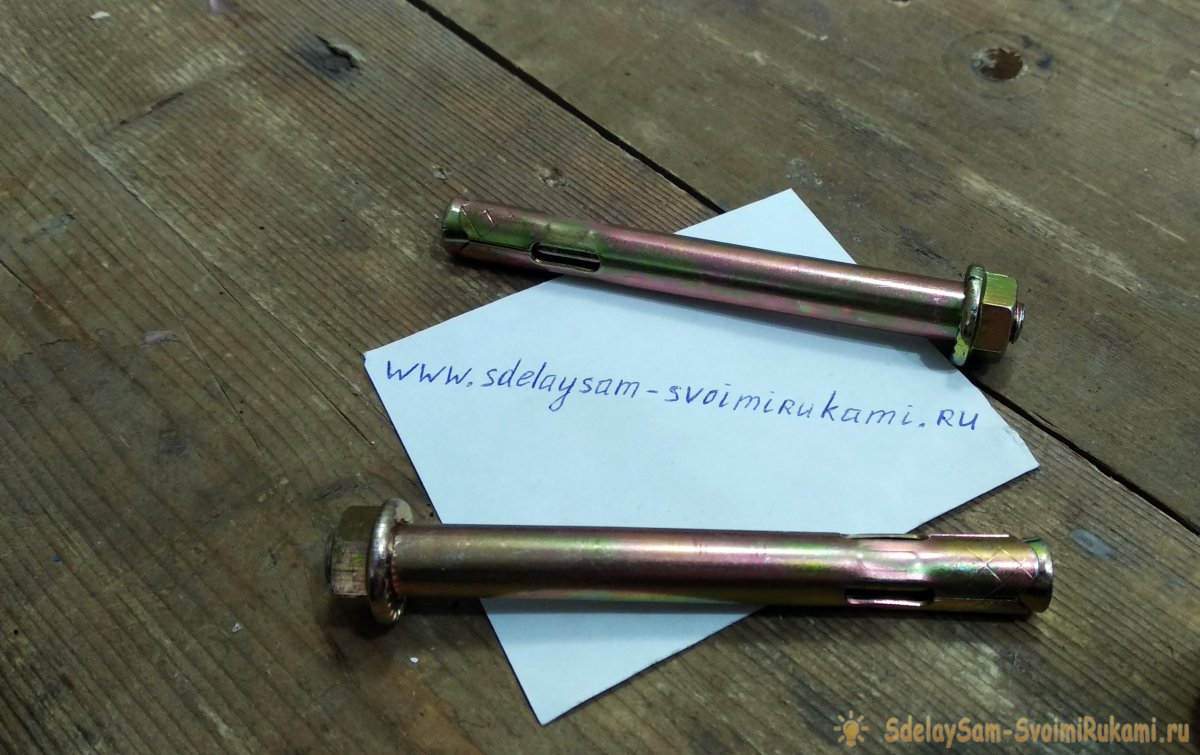 Полезное приспособление из двух анкерных болтов Сегодня я расскажу вам как с пользой использовать остатки крепежа, в данном случае это будут два анкерных болта с гайкой М8х100, которые у меня валялись без дела.Готовое приспособление вы можете увидеть на фотографии ниже:Изготовление полезного приспособленияИтак, приступим к процессу изготовления.