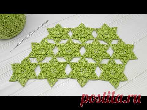 ЦВЕТЫ КРЮЧКОМ мастер-класс ЦВЕТОЧНЫЙ УЗОР DIY Tutorial Crochet flower How to join motifs