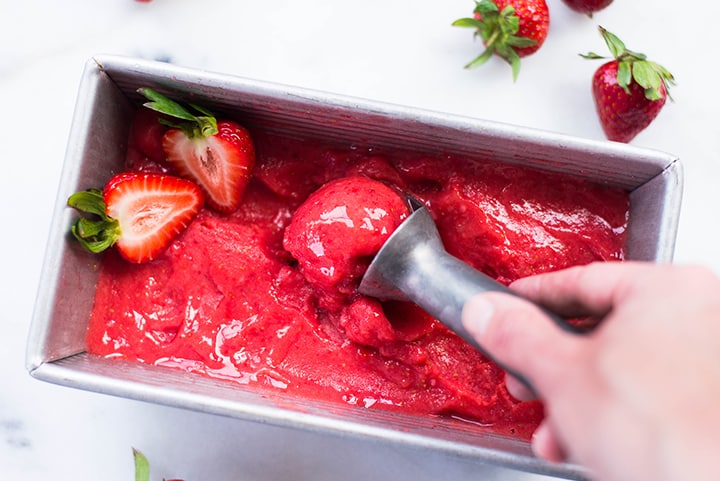 Легкий клубничный сорбет с медом Домашний клубничный сорбет так просто сделать! Вы можете использовать в этом рецепте сорбета не только клубнику, но и любые другие сезонные фрукты. Простое замороженное фруктовое угощение.