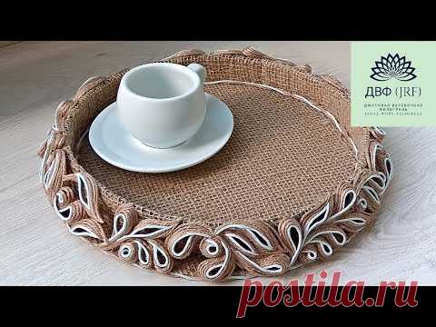 Поднос из джута и мешковины в технике Джутовая филигрань- Изделия из джута-Jute craft ideas/© 2020 г