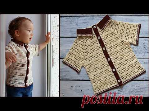 Детская рубашка крючком | Летняя кофточка для мальчика крючком