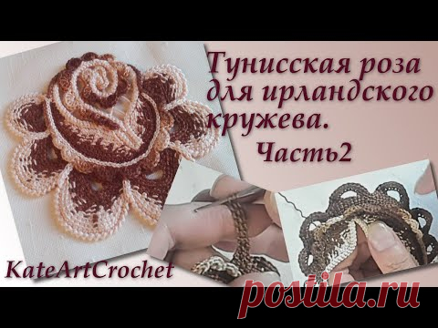 Мастер-класс - Тунисская роза для ирландского кружева. Часть 2. Irish Crochet & Tunisian Crochet.