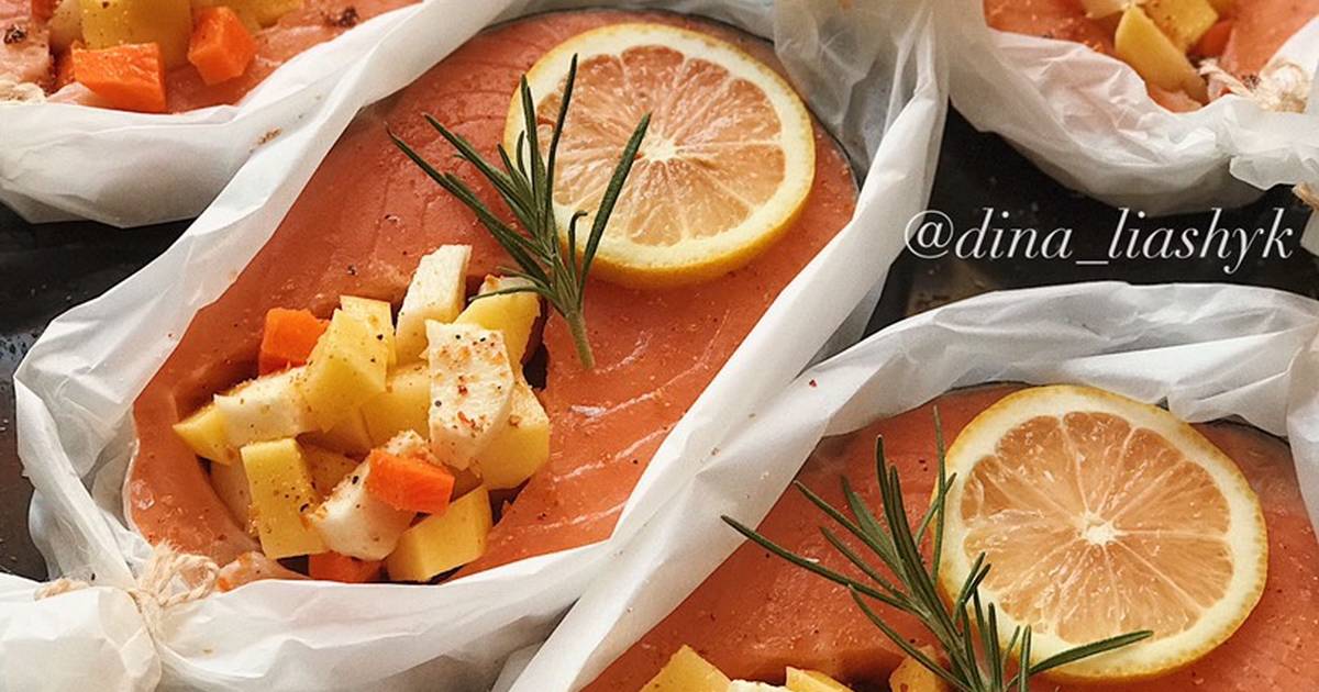 Стейк сёмги в бумажной лодочке с овощами - пошаговый рецепт с фото.