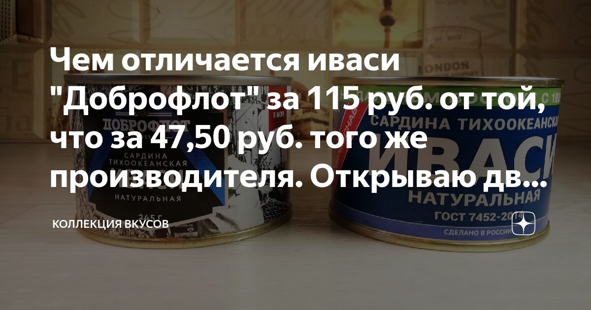 Чем отличается иваси "Доброфлот" за 115 руб. от той, что за 47,50 руб. того же производителя. Открываю две банки и сравниваю Сегодня в моём обзоре сразу две рыбные консервы из иваси. Одну баночку я приобрела в "Пятёрочке" по цене 114,99 руб. Вторая была куплена в "Светофоре" по цене 47,50 руб. Производитель у них один. Вот и стало интересно, как будет отличаться содержимое при разнице в цене более, чем в два раза.
