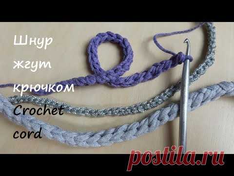 Плотный круглый шнур жгут крючком для завязок, пояса или ручки сумки. Видео МК. Crochet cord