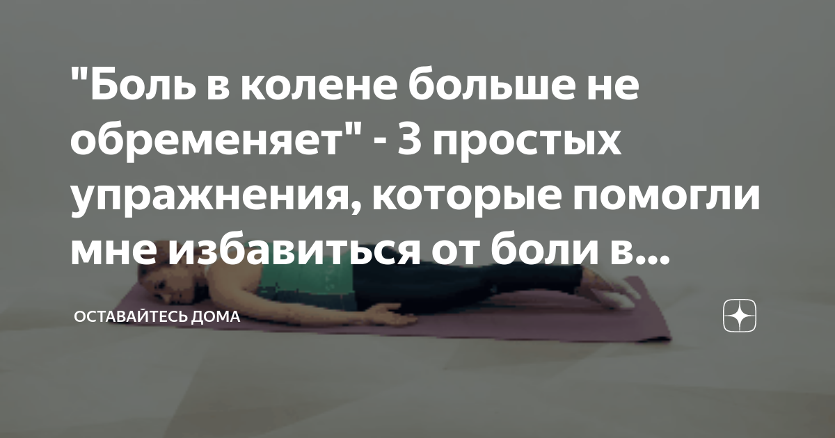 "Боль в колене больше не обременяет" - 3 простых упражнения, которые помогли мне избавиться от боли в колене. (даже после 50-ти) Привет, дорогие друзья и читатели канала. После 50-ти это достаточно распространённая проблема - боль в ногах, а конкретно - в коленях. Потому сегодня я хочу рассказать вам о трёх способах, которые помогли мне самому. Перед применением этих способов необходима консультация специалиста. 1. Прямые ноги. Это упражнение выполняется лёжа на животе. Ва...