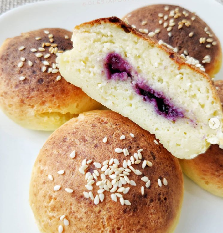 ТВОРОЖНЫЕ ПП БУЛОЧКИ С НАЧИНКОЙ😋 Ингредиенты: - 400г творога 5%(из брикетов) - 1 большое и 1 маленькое яйцо (90г), либо берите 1 яйцо и 1 белок - 120г рисовой муки - 40г черники - ванилин по вкусу - разрыхлитель на кончике ножа - 4г кунжута доя посыпки - сахарозаменитель