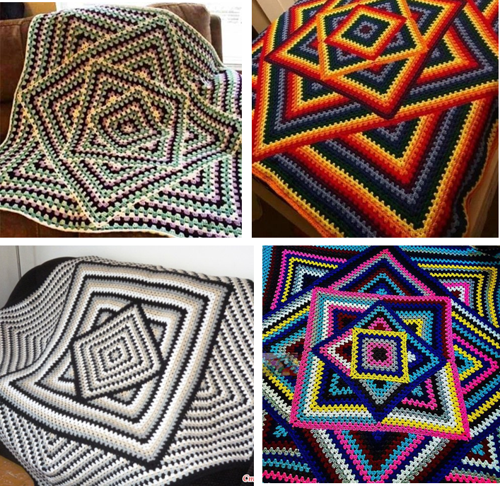 Вяжем шикарные пледы крючком по мотивам бабушкиного квадрата - 9 примеров со схемами и множество идей цветовых схем | МНЕ ИНТЕРЕСНО | Яндекс Дзен