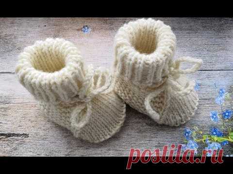 Вяжем спицами пинетки для новорожденного (0-3 месяца).