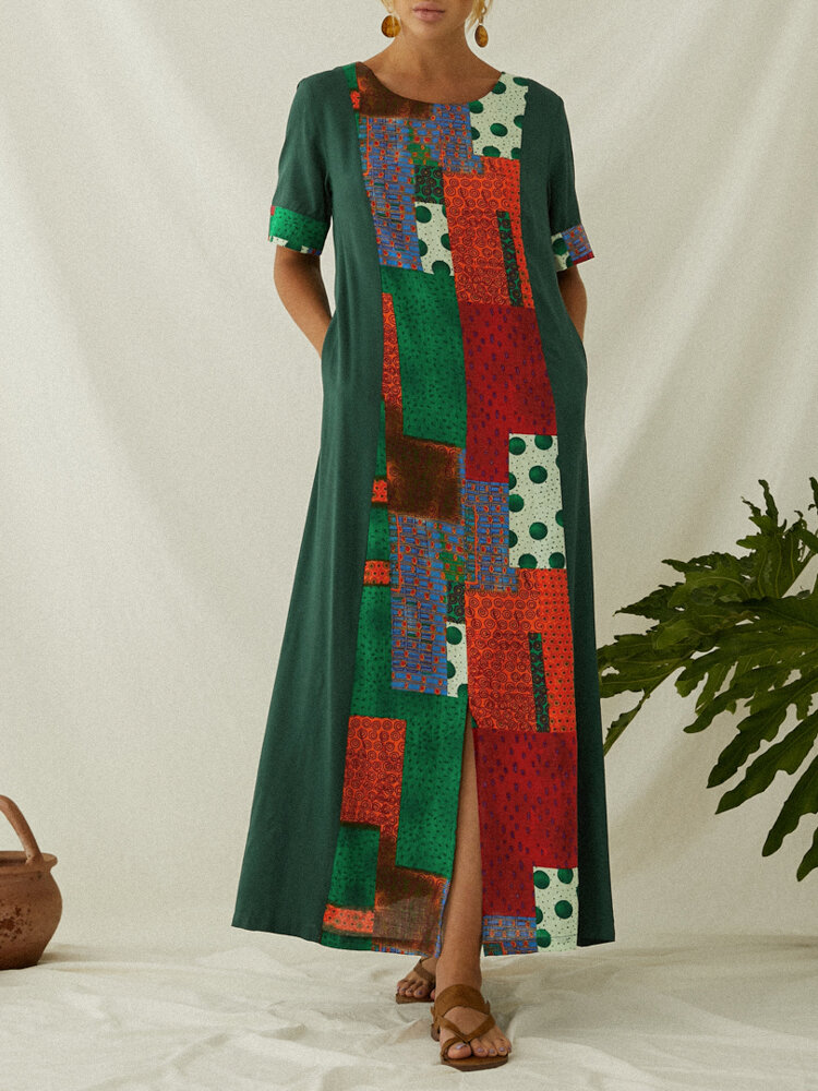Этническая принт пэчворк с коротким рукавом Винтаж макси Платье для Женское Ваш друг поделился с вами модным сайтом и дает вам скидку до 20%! требуй это сейчас.
