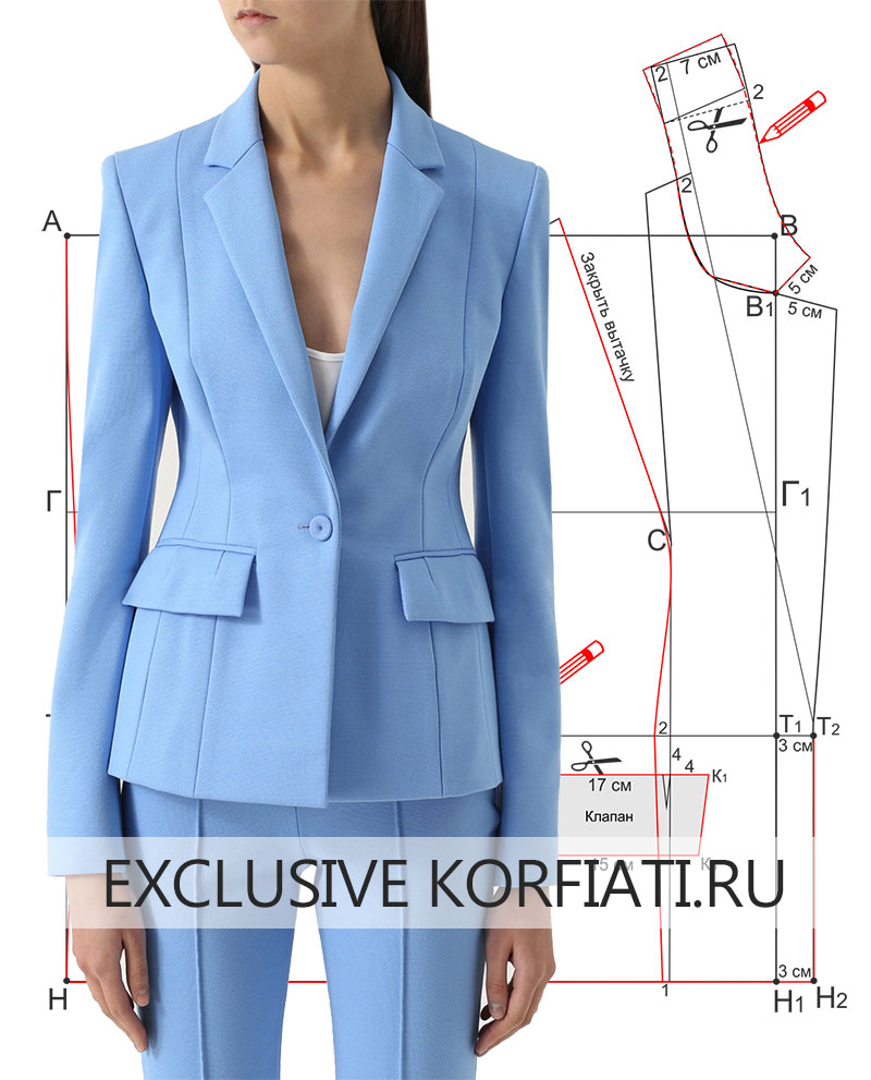 Выкройка жакета с вертикальными рельефами от Анастасии Корфиати Вертикальные рельефы зрительно вытягивают силуэт, акцентируют утонченность талии. Выкройка жакета с вертикальными рельефами - инструкции по пошиву.