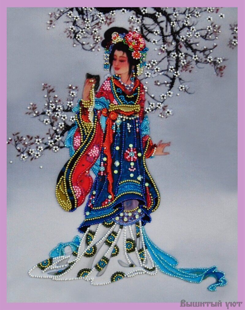 Набор для вышивки бисером "Восточная красавица" - 2 В комплекте: Ткань для вышивания с нанесенным рисунком-схемой Бисер, Игла для вышивания бисером, Инструкция