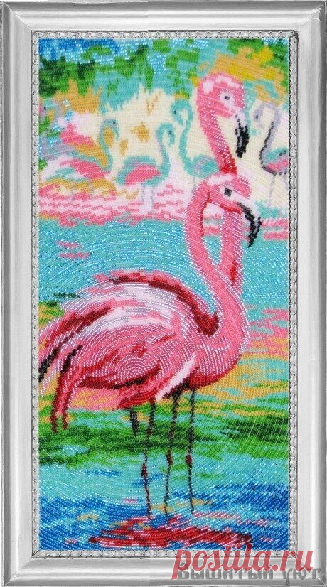 523 Вечерние фламинго Набор для вышивания бисером Ткань с нанесенным полноцветным рисунком, бисер Preciosa Ornela (Чехия) 16 цветов, игла для вышивания, инструкция.