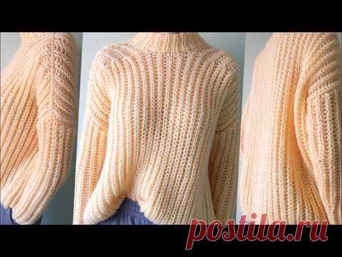 Самый простой свитер оверсайз спицами для начинающих | Свитер простым узором, полупатентной резинкой