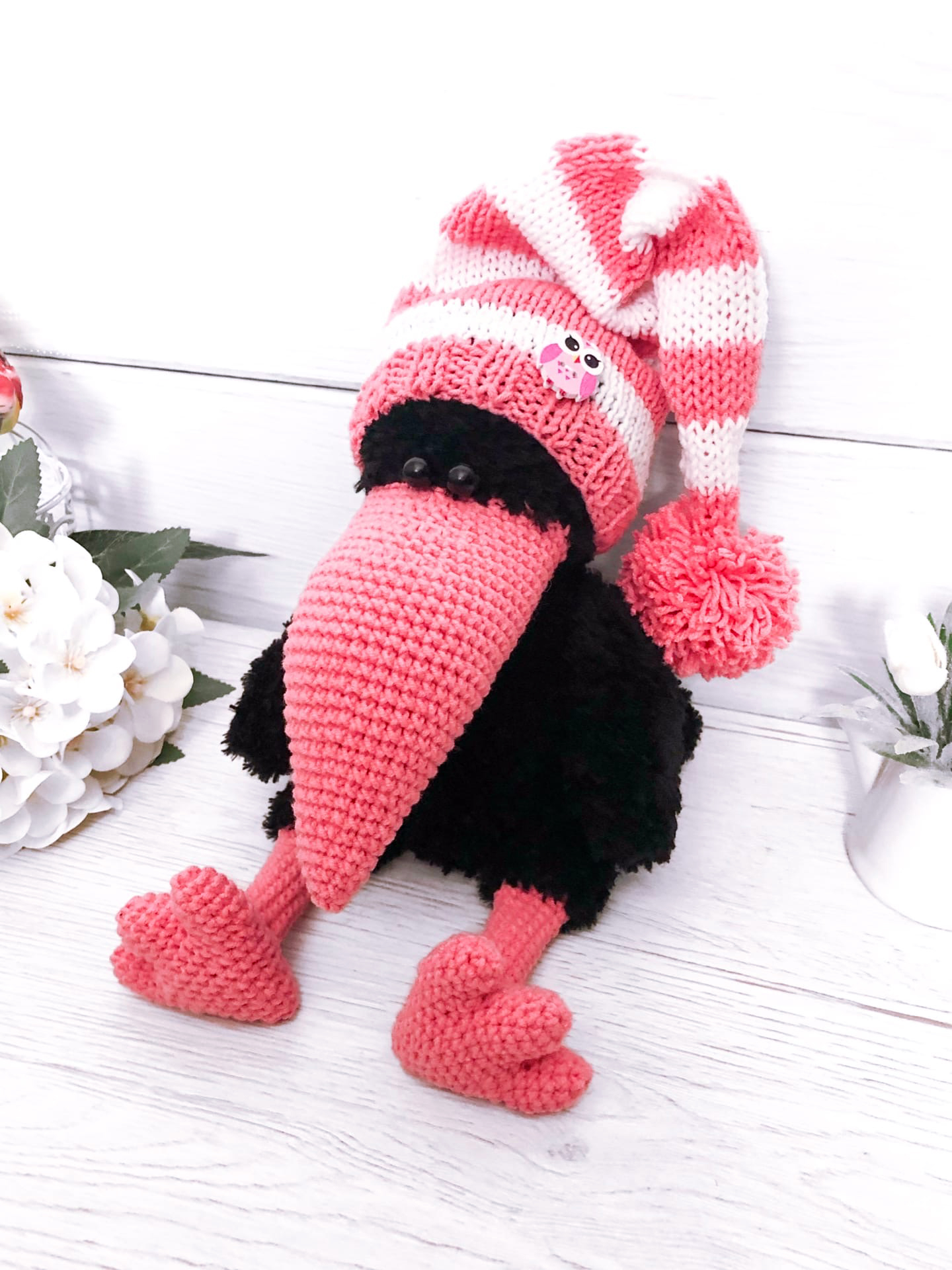 PDF Карлуша крючком. FREE crochet pattern; Аmigurumi bird patterns. Амигуруми схемы и описания на русском. Вязаные игрушки и поделки своими руками #amimore - ворона, ворон, птица, птичка.