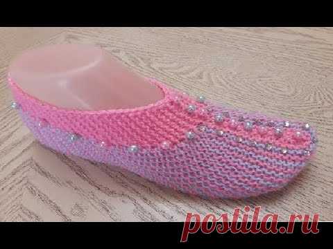 ОДНИМ ПОЛОТНОМ!! Тапочки следки на двух спицах №7 / patik modelleri