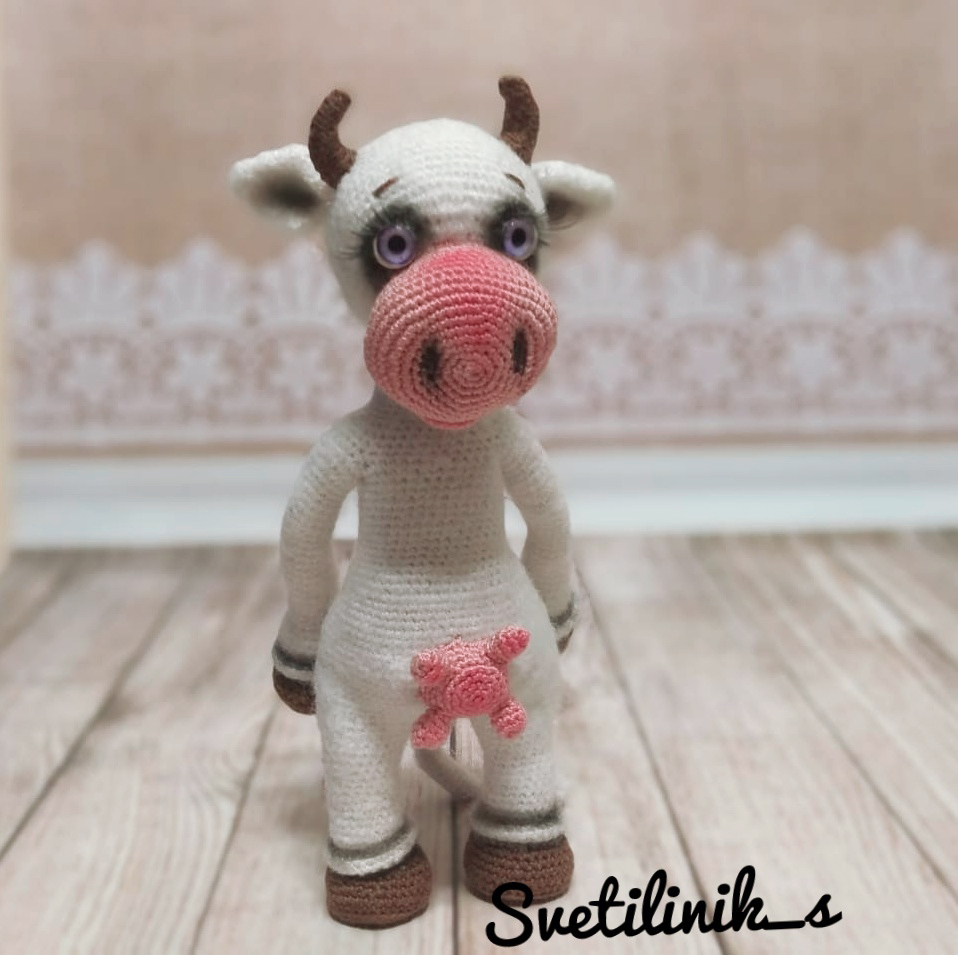 PDF Коровушка Любава крючком. FREE crochet pattern; Аmigurumi animal patterns. Амигуруми схемы и описания на русском. Вязаные игрушки и поделки своими руками #amimore - корова, коровка, телёнок, бык, бычок.