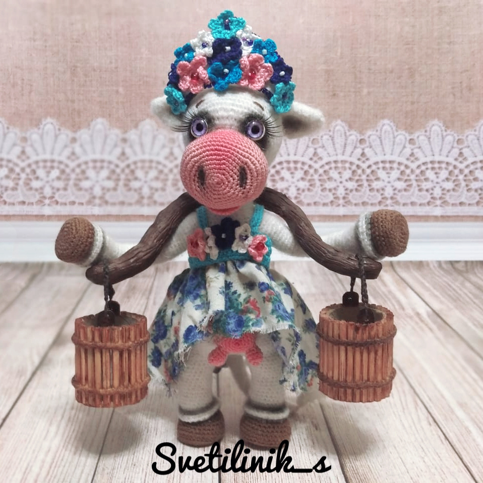 PDF Коровушка Любава крючком. FREE crochet pattern; Аmigurumi animal patterns. Амигуруми схемы и описания на русском. Вязаные игрушки и поделки своими руками #amimore - корова, коровка, телёнок, бык, бычок.