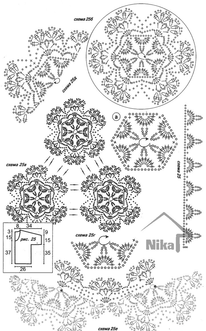 Кофточка из круглых мотивов крючком. Схема красивого узора крючком.