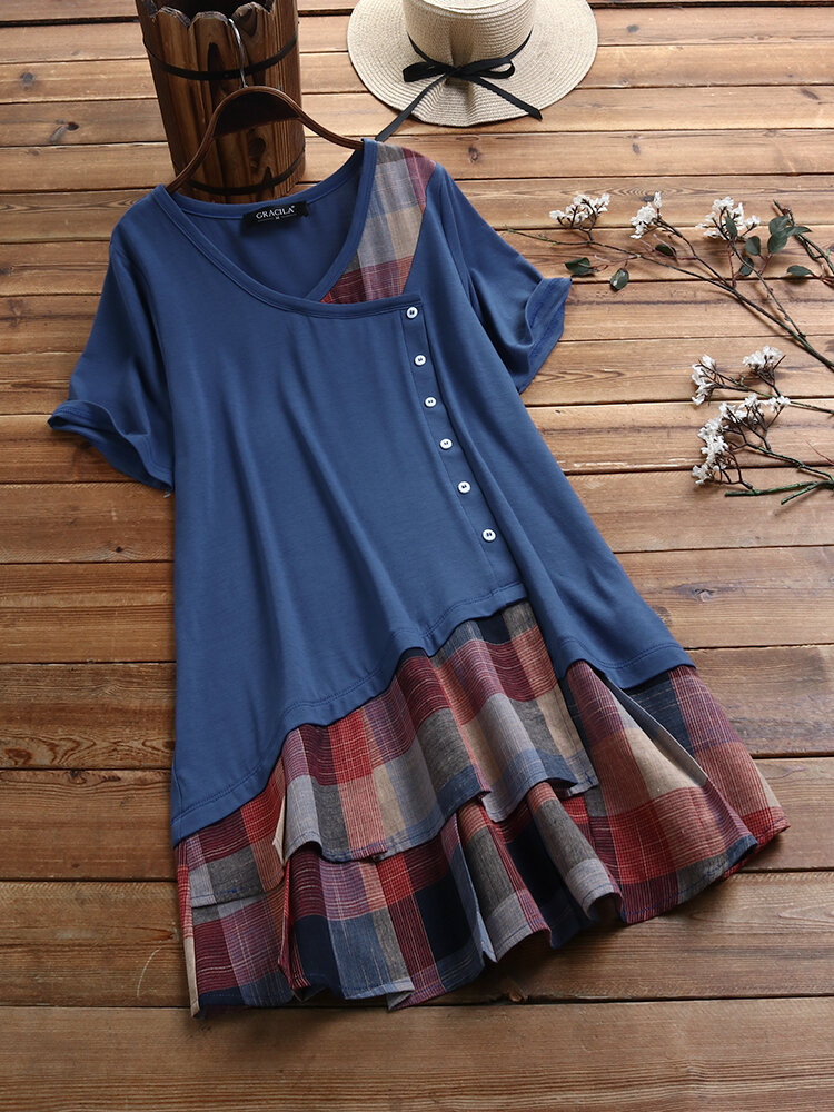 Плед Лоскутная с коротким рукавом и V-образным вырезом на пуговицах Блуза Ваш друг поделился с вами модным сайтом и дает вам скидку до 20%! требуй это сейчас.