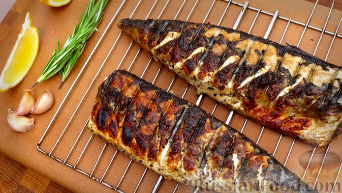 Рецепт: Скумбрия в чесночно-лимонном маринаде, на мангале на RussianFood.com