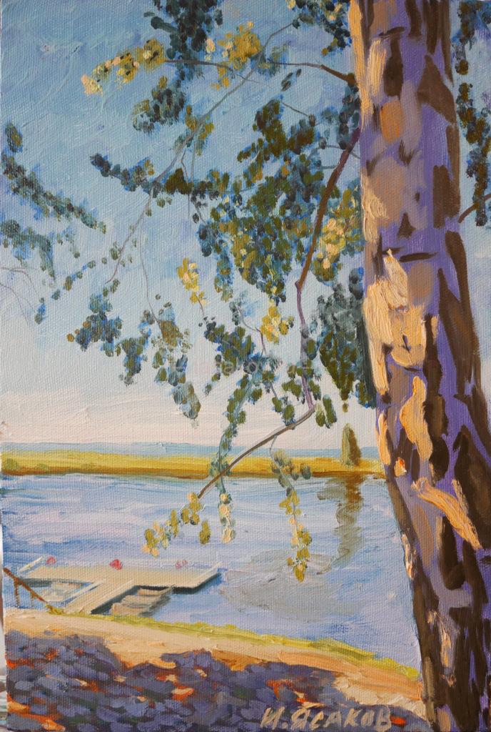 Лето - Официальный сайт художника Игоря Ясакова Лето. Солнечный день. Старица реки. Лодочный причал. Берёзка. Едва заметное дуновение тёплого воздуха. Холст/масло 30х20 см.