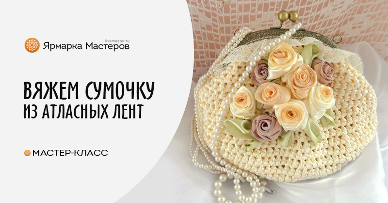 Мастер-класс : Создаем сумочку из атласных лент с вышивкой | Журнал Ярмарки Мастеров Создаем сумочку из атласных лент с вышивкой – бесплатный мастер-класс по теме: Вязание крючком ✓Своими руками ✓Пошагово ✓С фото