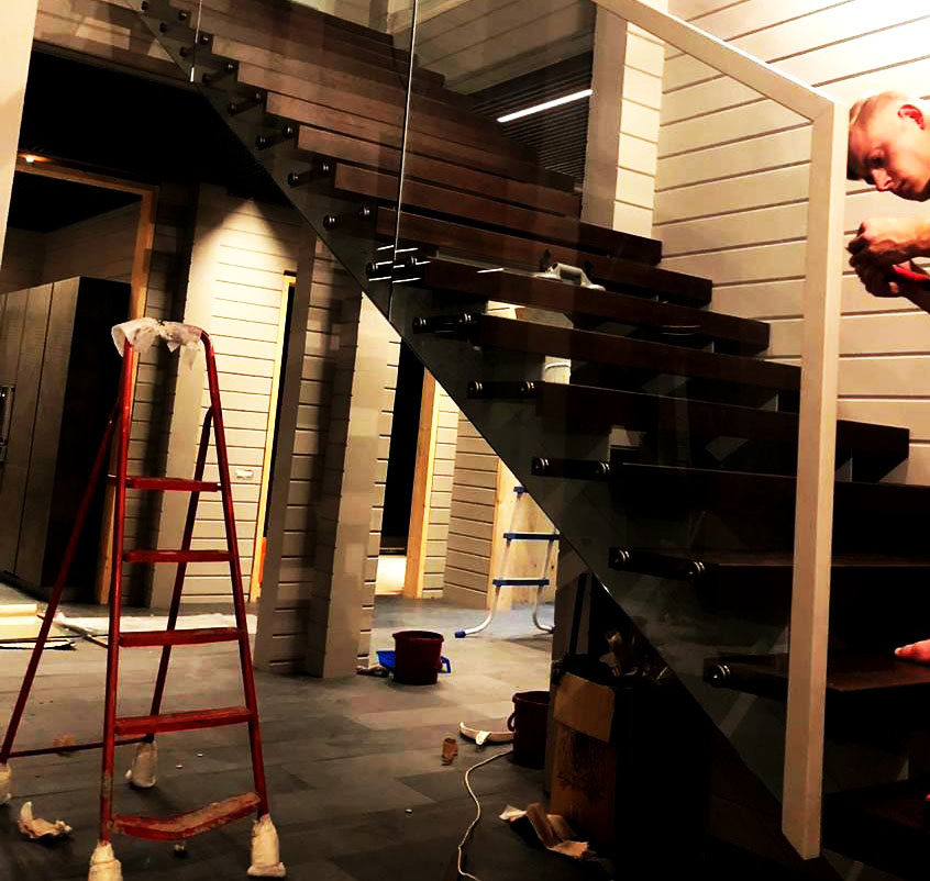 Лестница на тетивах со стеклом