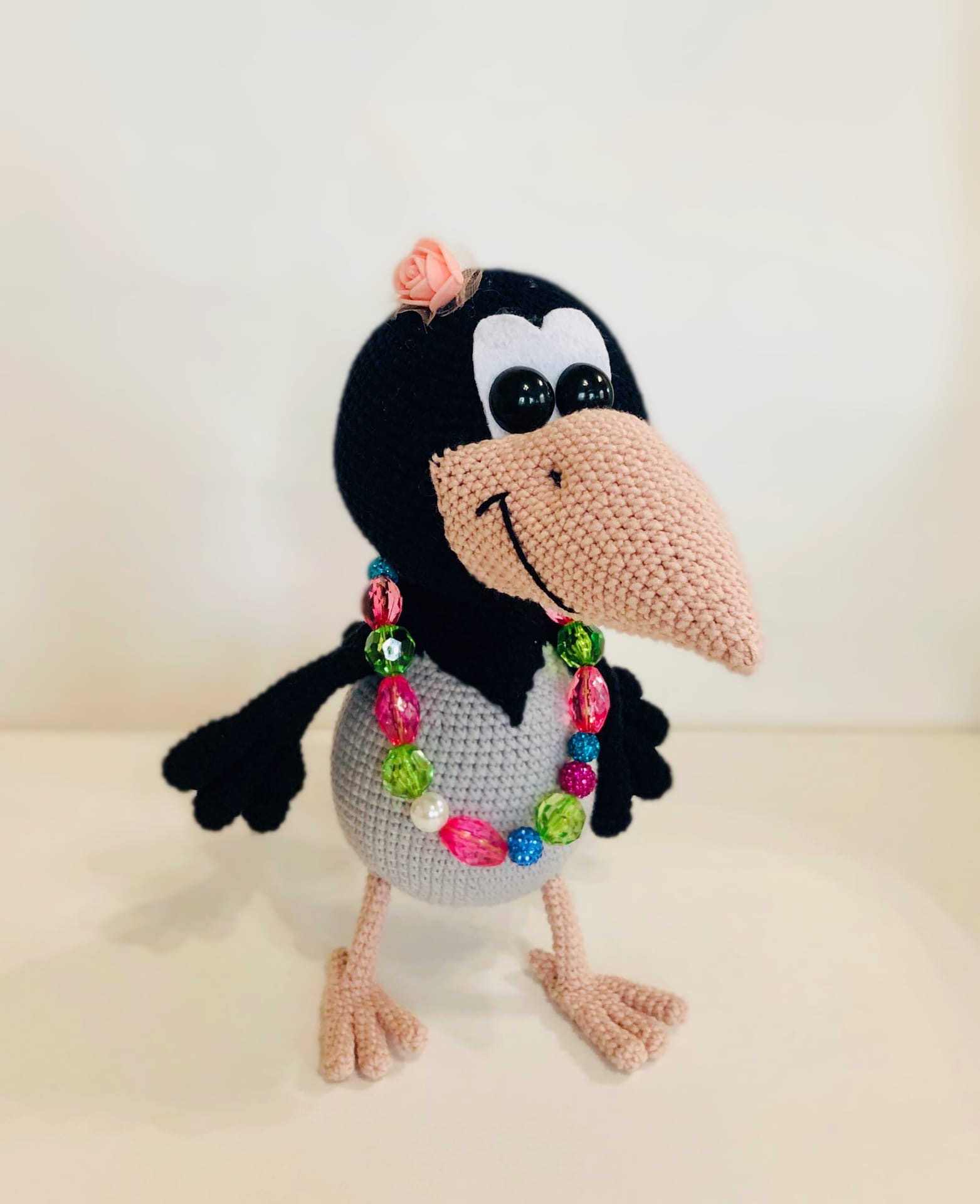 PDF Ворона Алёна крючком. FREE crochet pattern; Аmigurumi bird patterns. Амигуруми схемы и описания на русском. Вязаные игрушки и поделки своими руками #amimore - ворона, ворон, птица, птичка.